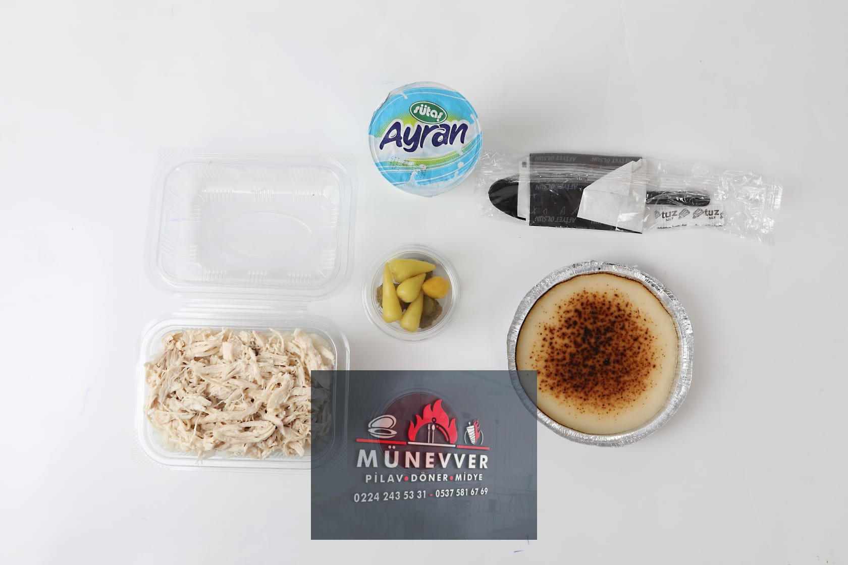 Münevver Pilav Döner Midye olarak, sadece tatlılarımızla değil, özenle hazırladığımız tavuklu pilav ile de hizmetinizdeyiz. Geleneksel Türk mutfağının doyurucu ve lezzetli yemeklerinden biri olan tavuklu pilav, taptaze malzemelerle ve ustalıkla hazırlanarak sofralarınıza sunuluyor.